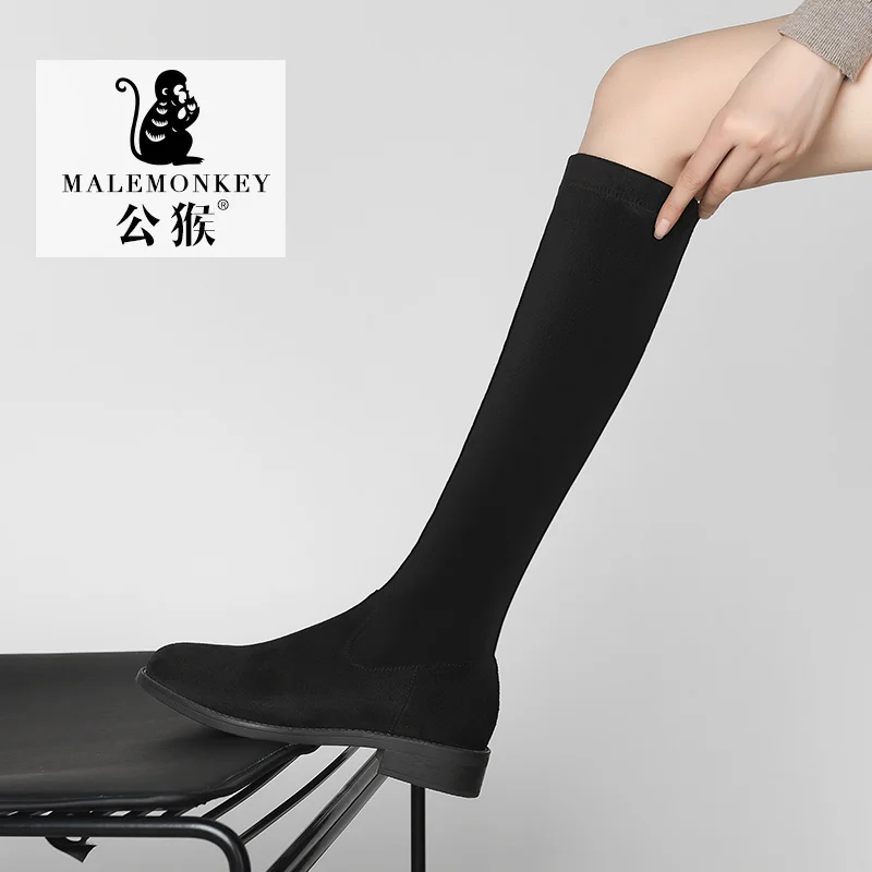 Related Product for 2019 Autumn Women Boots High Street Designer Flock Black Knee High Boots Ladies Brand Casual Shoes