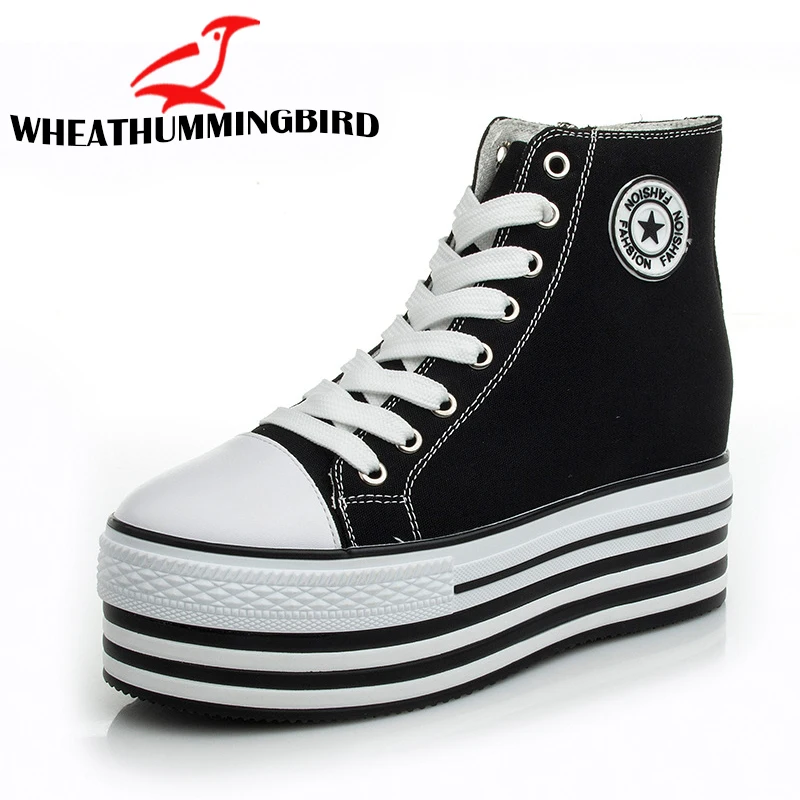 Affordable Woman Platform Vulcanized Shoes Hidden Heel Height Increasing Casual Shoes female High-top Sneakers Wedges Canvas Shoes LM-18ZGet 75% OFF, VALID UNTIL TOMORROW